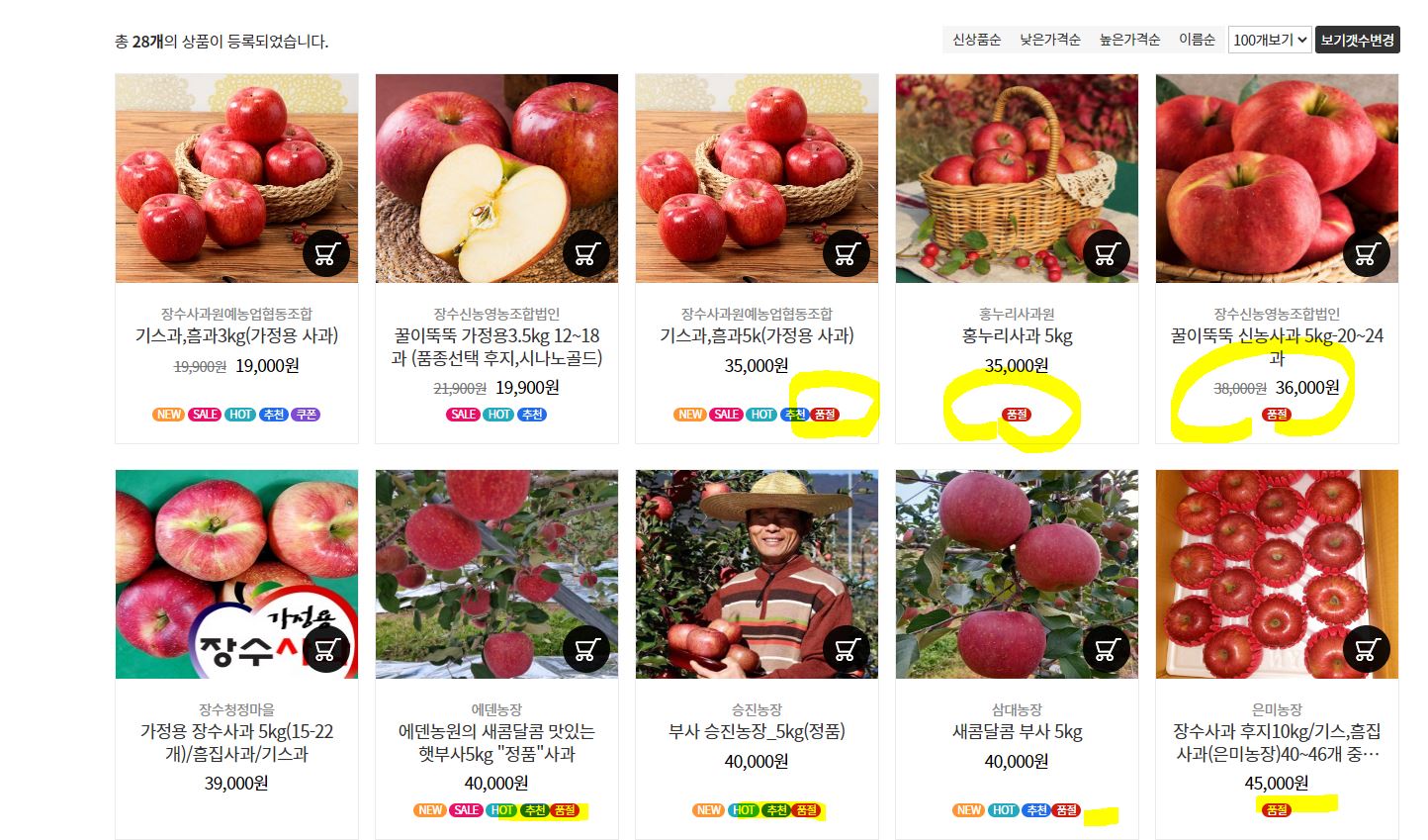 사과 품절 상품이 너무 많습니다